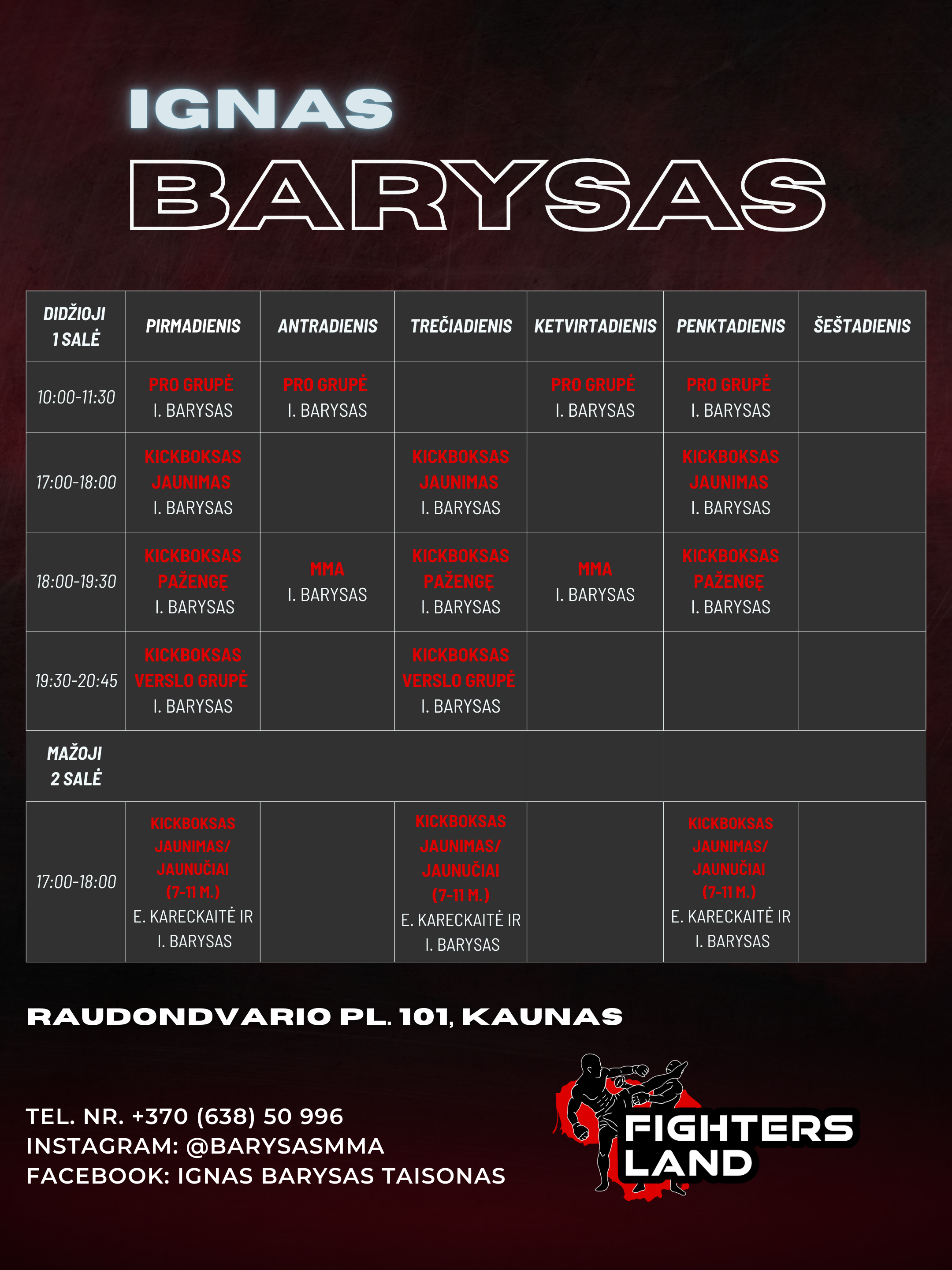 Trenerių tvarkaraščiai